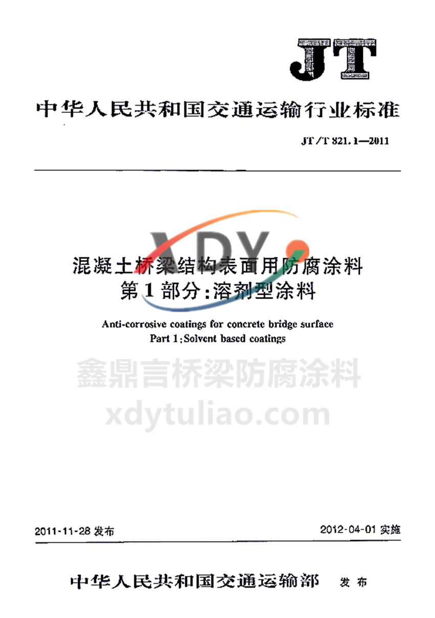 混凝土橋梁結(jié)構(gòu)表面用防腐涂料 第1部分:溶劑型涂料JT/T 821.1-2011